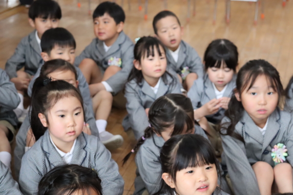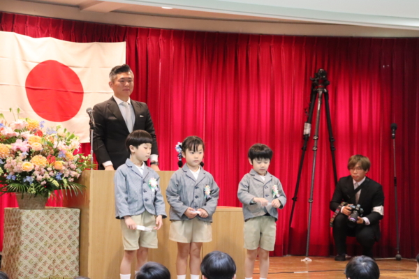 式が始まり、少し緊張した表情で入場してきた年長のお子さま方。
