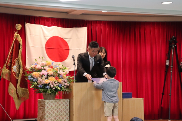 証書授与では、1人ひとりの名前が呼ばれると、大きな声で返事をし、しっかりと前を向いて証書を受け取る姿が見られました。